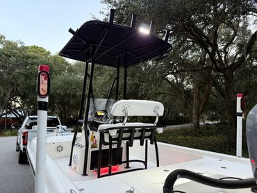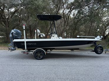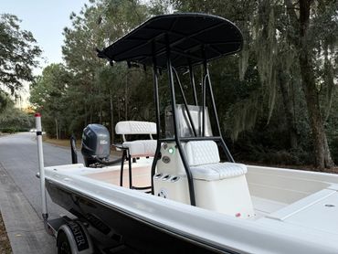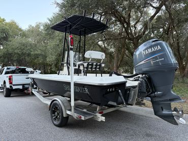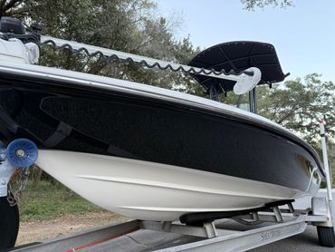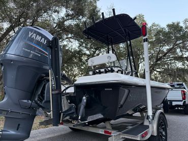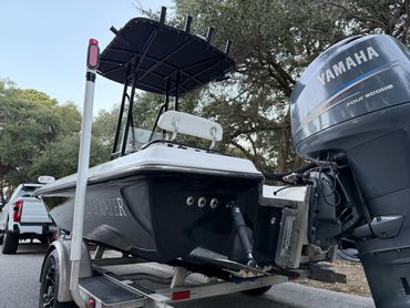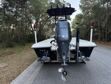Boat is in excellent condition. Gelcoat is in great condition with minimal defects. Hull offers an exceptionally dry ride yet drafts shallow. Yamaha 150 with 877 hours. Engine runs like new and pushes the boat into the low 50’s. Fresh engine service, and engine hour and compression reports available upon request. All lights, pumps, and accessories work as they should. Custom Ameritrail trailer has a new torsion axle, custom wheels, and full size spare.