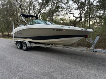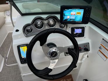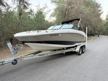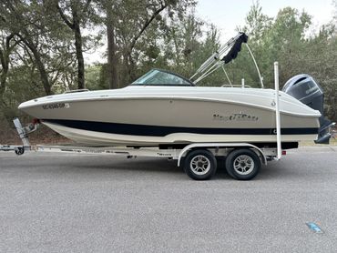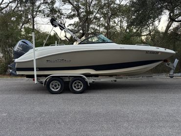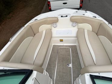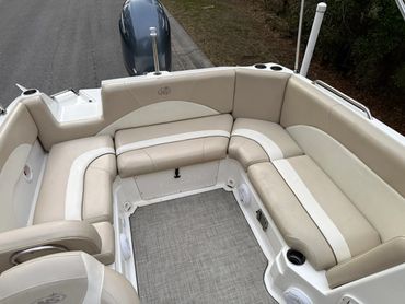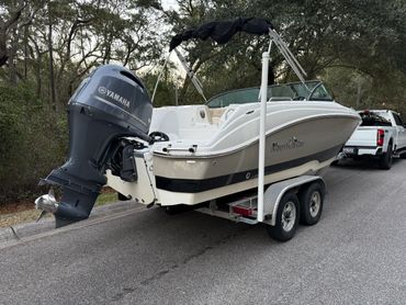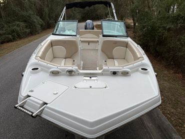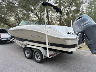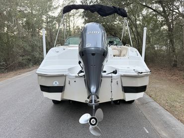 Perfect family boat with all of the goodies. Combines the great ride of a deep V hull with the space and comfort of a deck boat. Tons of seating, great stereo, and the Yamaha 200 four stroke has only 247 hours.
