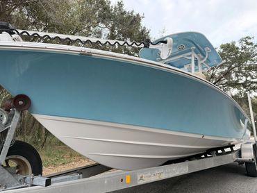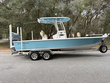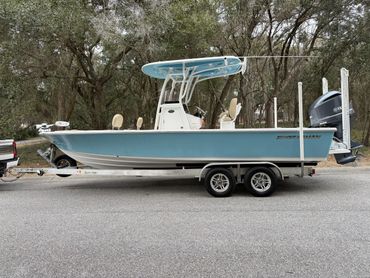 Boat is in great condition cosmetically and mechanically. Yamaha 300 four stroke runs like new with 194 hours and a fresh service. All pumps, lights and accessories work. The ride is extremely dry despite its shallow draft. Magic Tilt Custom aluminum trailer has new tires, aluminum wheels, welded bunks, and a full size spare. All trailer lights work - even the side markers.