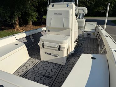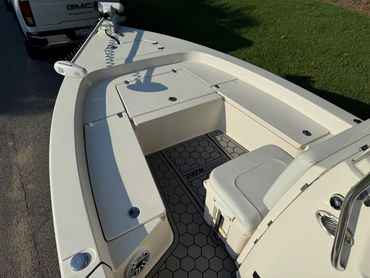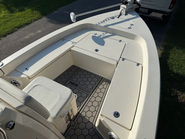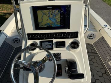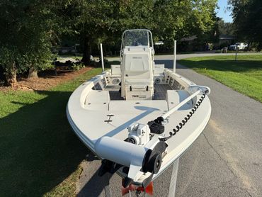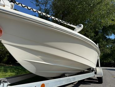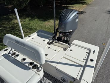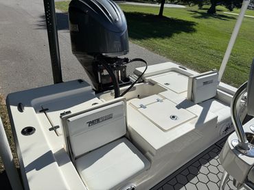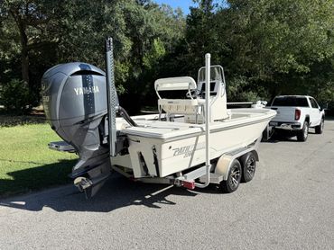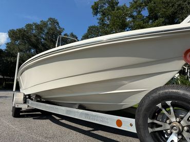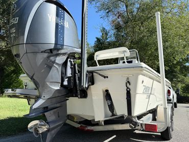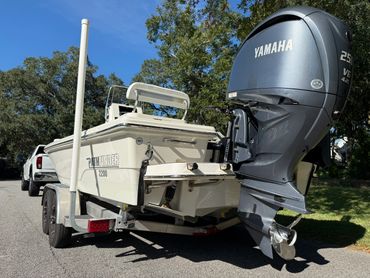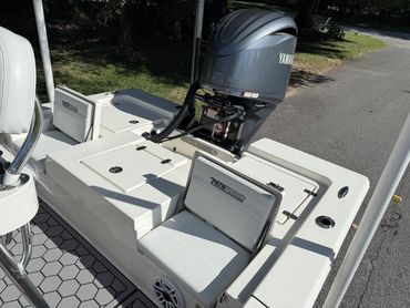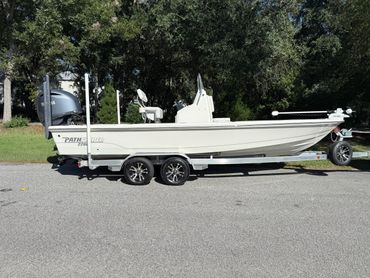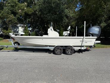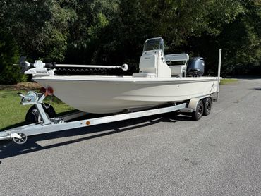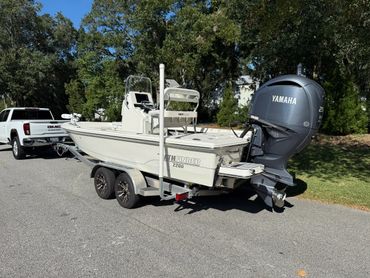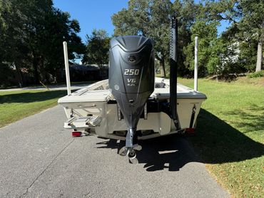 Boat is in excellent condition. Hull offers an exceptionally dry ride yet drafts shallow. Boat came from the factory with a 150 Yamaha which was underpowered for the hull, so a brand new 250 Yamaha was just installed. Zero hours of use and full factory warranty will be transferred to the new owner. All lights, pumps, and accessories work as they should. Custom Magic Tilt tandem aluminum trailer has welded bunks, disc brakes on both axles, custom wheels, torsion axles, and full size spare.
